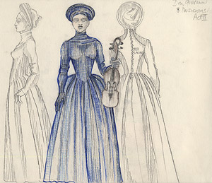 A charming costume drawing for this much-loved staging